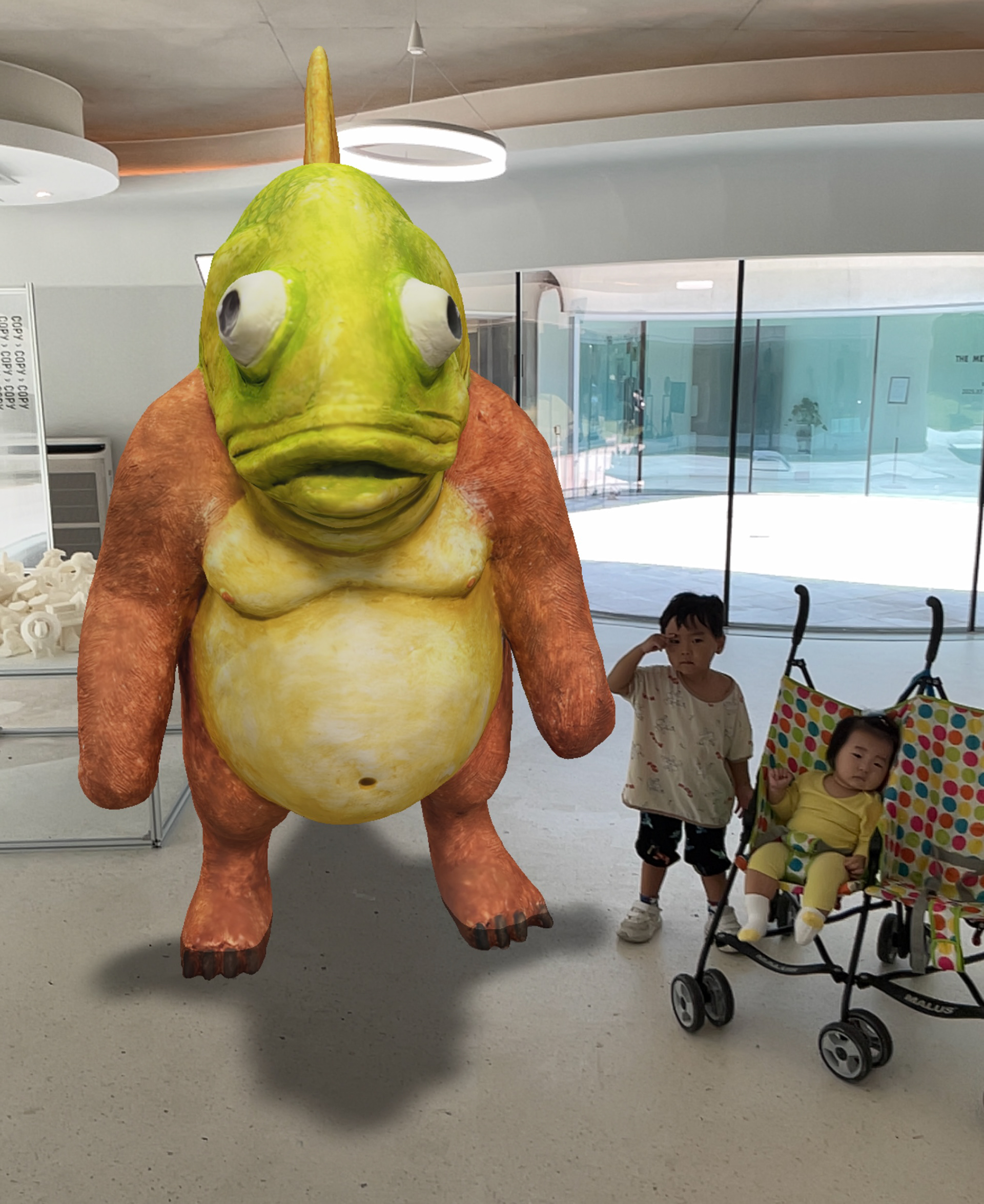 나는 AI 기반 밈 이미지, 일명 'AI Slop' 또는 '이탈리안 브레인롯'과 같은 과잉된 시각 언어를 수집하고, 그들을 다시 손으로 빚고, 3D프린터로 출력하고, 전시장에 쌓으며, 또다시 AR로 재변환한다. 작품은 완성되지 않는다. 3D프린터는 전시 기간 내내 작동하고, 수정되지 않은 출력물들은 계속 쌓인다. 이 작업은 일종의 과정, 흐름, 미결정성의 시각화다.